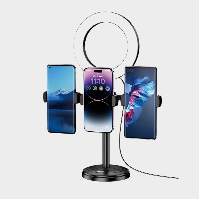 ذراع مرن لحمل الهاتف وتوجيه الإضاءة حسب الزاوية المناسبة.